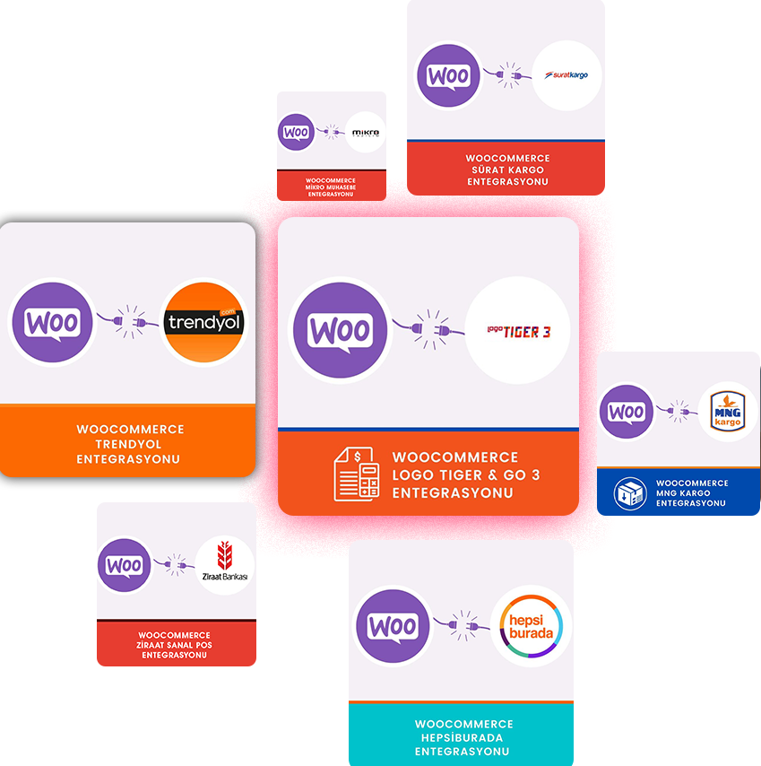 Woocommerce altyapısına sahip e-ticaret sitelerinize özel; pazaryeri, muhasebe, kargo ve sanal pos işlemlerinizi tek yerden kontrol edebilirsiniz. İhtiyacınız olan tüm özel entegrasyon çözümleri Wootegra ile artık çok kolay.